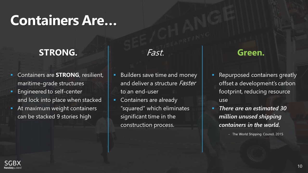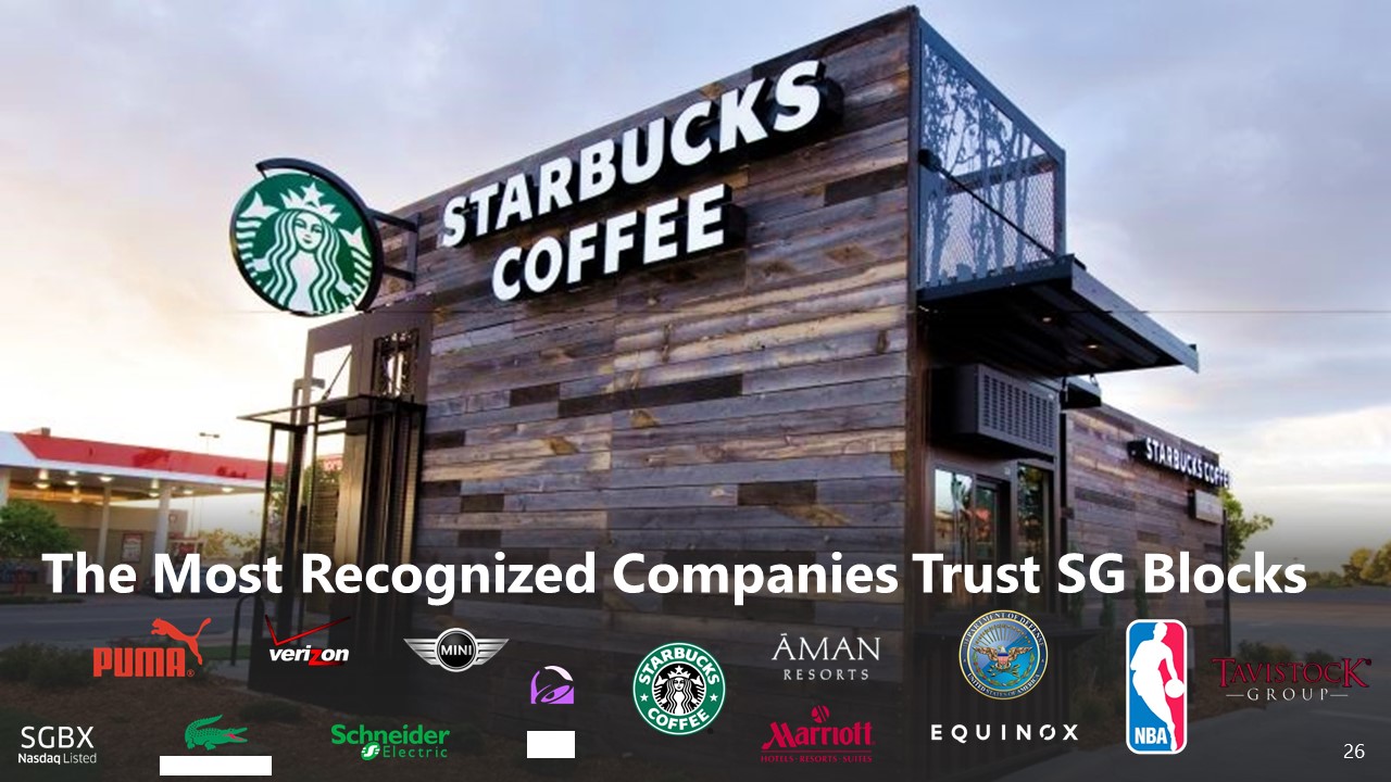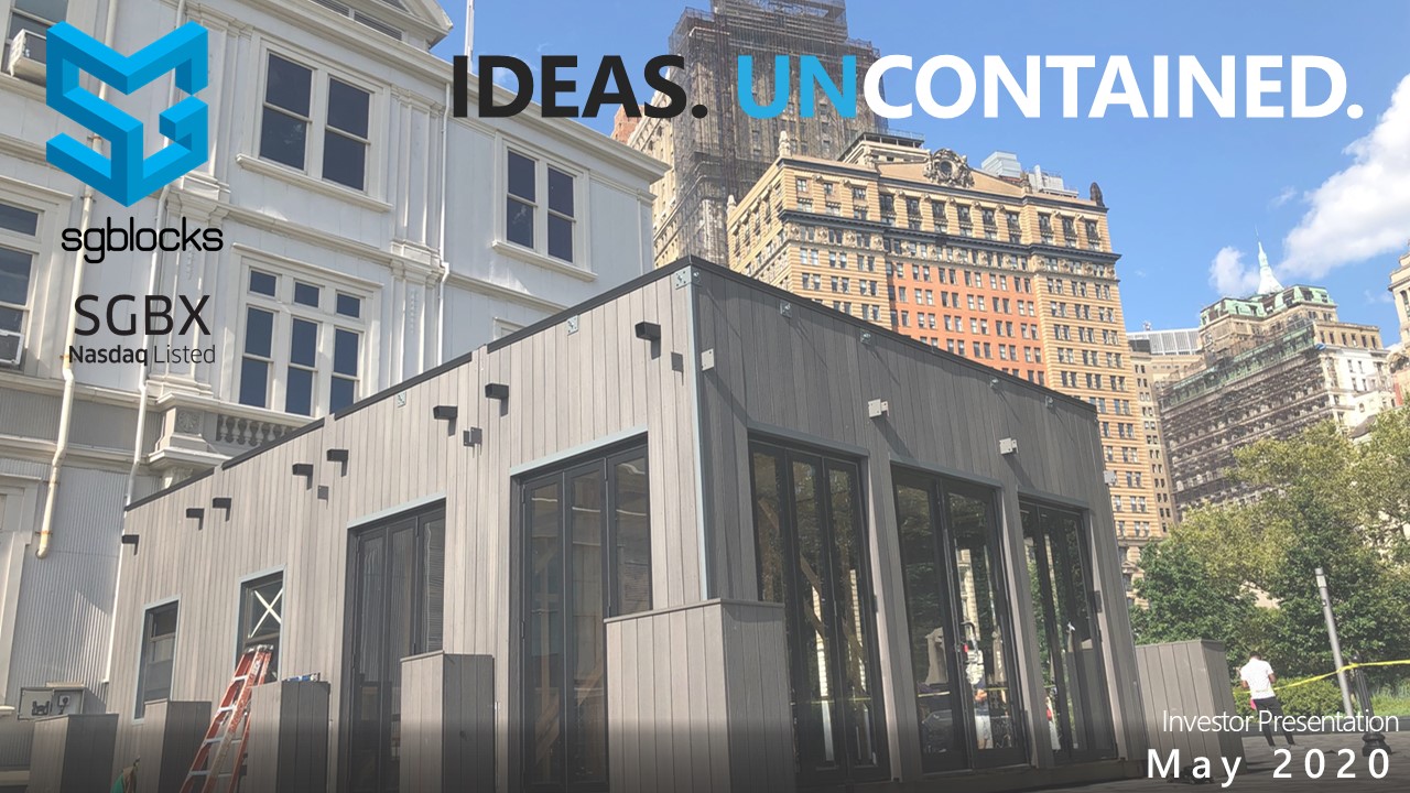 Signed MSA with World - Renowned Grimshaw Architects for Exclusive Container - Based Modular Design ▪ SG Blocks signed MSA with world - renowned Grimshaw Architects in June 2018 ▪ Grimshaw named SG Blocks’ premier design partner for current and future opportunities ▪ SG Blocks to be included into Grimshaw’s award - winning industrial design portfolio ▪ This expands SG Blocks’ A&E service offering to Grimshaw’s elite client base for world - class projects ▪ Thought leader for the future of industrial design integrating SG’s container - based modular structures 28 Pictured above: An excerpt of Grimshaw’s design portfolio using SG Blocks’ container - based structures. Click the above video link in the bottom left box to view an animation by Grimshaw of how containers can be used in construction. & NYC JFK Airport – Newark Liberty Int’l Airport – Tomorrowland Shanghai Disney Resort – Dubai Expo 2020 – HS2 London